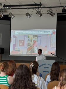 Ziel ist es, demokratische Zusammenhänge greifbar zu machen und das Interesse an politischer Teilhabe zu wecken – ohne belehrend zu wirken. Die Schülerinnen und Schüler konnten so per Handy abstimmen, ihre Meinung und Erfahrungen teilen und sich aktiv einbringen. Ebenso konnten sie alles fragen, was sie schon immer mal von einem Abgeordneten wissen wollten. Vorbereitet wurden diese Fragen während der zuvor an der FAG stattfindenden Methodentrainingstage unter der Leitung von Frau Tanja Relecker und Herrn Alexander Eckhardt. So ging es um politische Themen, die für die Schüler zukunftsrelevant sind und auch um ganz persönliche Fragen – etwa zur Vereinbarkeit von Familie und Beruf oder zu den Hobbys des Abgeordneten.