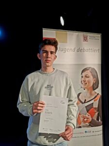Besonders erfolgreich verlief das Regionalfinale für Jonas Kniege von der Friedrich-August-Genth-Schule. In der Altersklasse I (Sekundarstufe I) erreichte er einen hervorragenden dritten Platz. Mit dieser Leistung trat er würdig in die Fußstapfen der Siegerinnen und Sieger des vergangenen Jahres und unterstrich eindrucksvoll das hohe Niveau der Debattenarbeit sowie die nachhaltige Bedeutung des Wettbewerbs an der Schule.