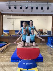 Die vier Turnerinnen sind für diesen Schul-Wettkampf noch sehr jung und mussten sich somit gegen bis zu vier Jahre ältere Turnerinnen beweisen. Freude am Sport und das Sammeln von zusätzlichen Wettkampferfahrungen stand für die Gruppe im Fokus. Lera punktete besonders am Balken und sammelte 13,3 Punkte, während Aulona und Salomé am Sprung die 13 Punkte erzielten. Der Sprungtisch und Balken waren an diesem Tag die stärksten Geräte. Sie konnten zwei wesentlich ältere gegnerische Mannschaften des Grimmelshausen-Gymnasiums und der Karl-Rehbein-Schule hinter sich lassen und beendeten den Wettkampftag glücklich und mit vielen neuen Eindrücken.
